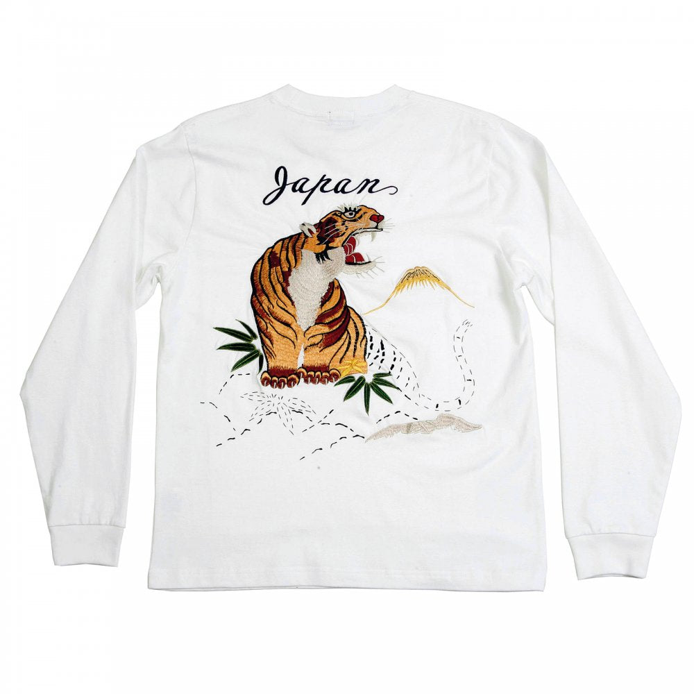 • Styling Tip: Layer this long sleeve T-shirt in white with hand embroidered roaring tiger under a bold puffer jacket for an effortlessly cool vibe, or wear it solo with dark denim for an impossible to ignore bold look.