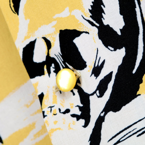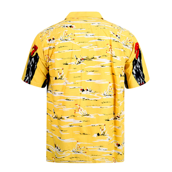Condor printed shirt from Star of Hollywood collection. This yellow shirt is crafted from 100% broad cotton for superior comfort. This short sleeve shirt features condor birds sitting atop skulls,...