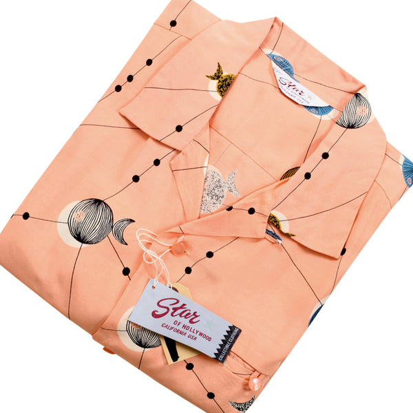 Atomic Fish printed shirt from Star of Hollywood collection. Crafted from 100% high density rayon, a fusion of multicoloured atomic fish printed on front and back of this off-white shirt....