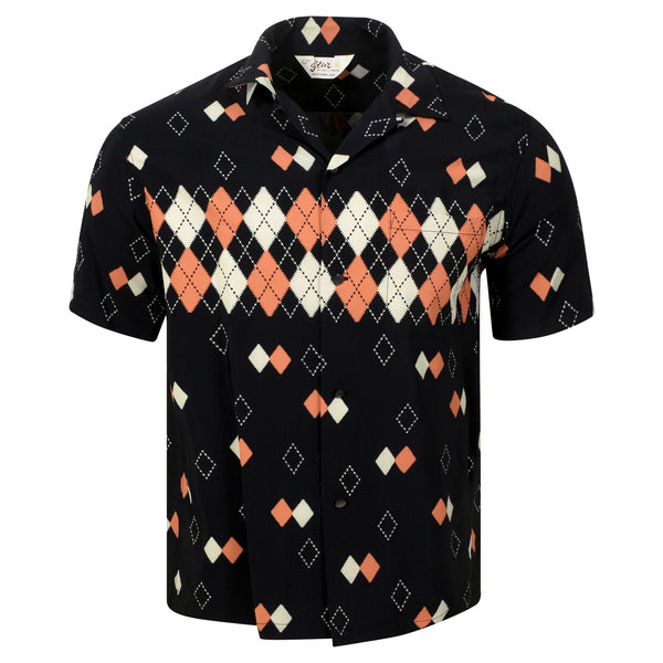 Argyle printed shirt from Star of Hollywood collection. This black shirt is crafted from 100% high density rayon and offers a regular fit. This short sleeve shirt features an argyle...