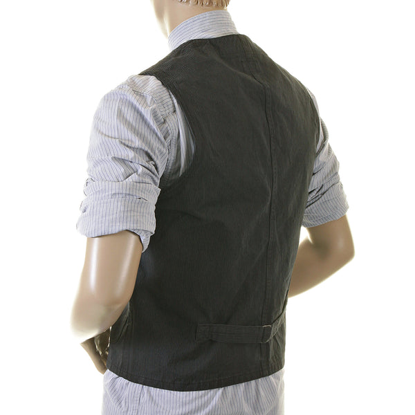 Black Vintage Cut Cotton SC12458 Striped Work Vest